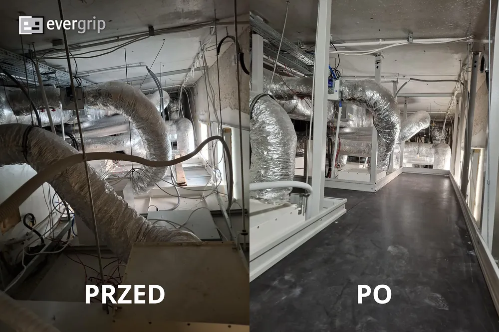 W marcu 2026 zrealizowaliśmy nietypowy projekt podestu serwisowego w przestrzeni laboratoryjnej. Głównym wyzwaniem był brak dostępu do instalacji wentylacyjnych oraz bardzo ograniczona przestrzeń montażowa, dodatkowo wypełniona istniejącymi instalacjami elektrycznymi i HVAC.