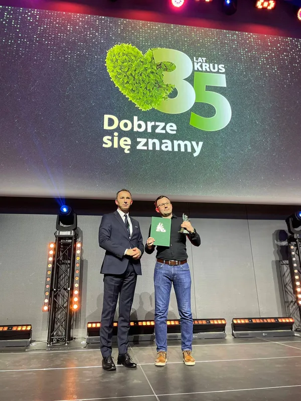 Statuetkę z rąk Prezesa Kasy Rolniczego Ubezpieczenia Społecznego Tomasza Ślusarczyka odebrał wiceprezes zarządu Tomasz Jarocki.