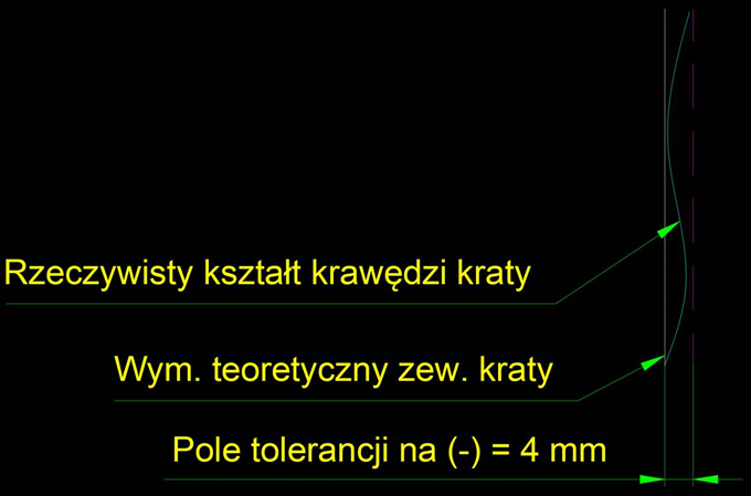 Stąd też przy projektowaniu/układaniu krat zakłada się nominalny wymiar zewnętrzny. kraty i zakłada się tolerancję tylko na (-). Tolerancję na minus należy rozumieć jak na poniższym przykładzie: