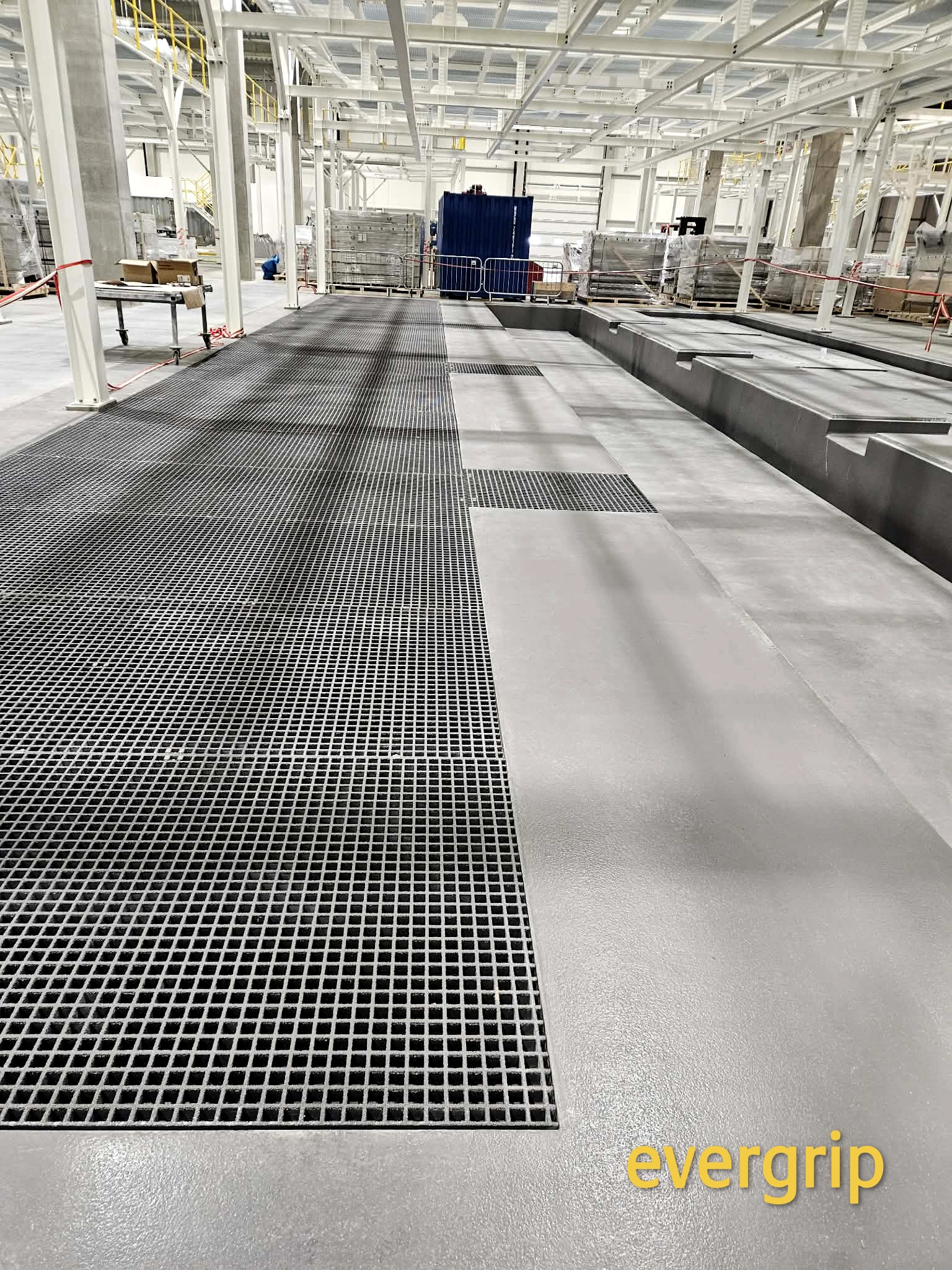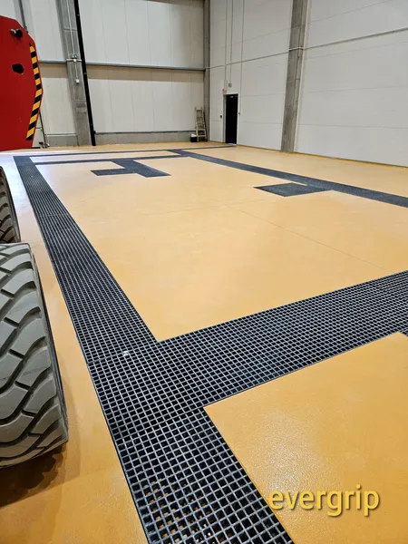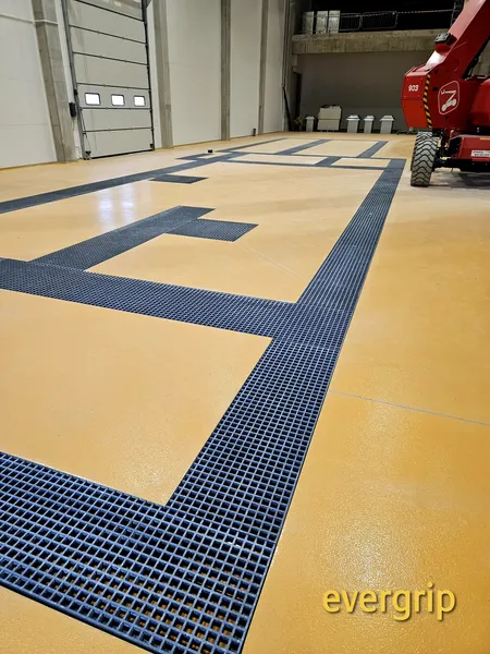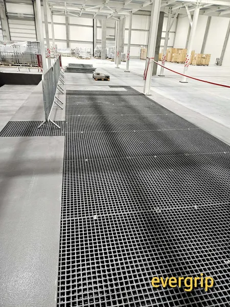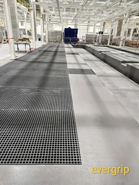 Kanały technologiczne w nowym obiekcie produkcyjnym wymagały trwałego i odpornego na środowisko rozwiązania przykrycia. Ze względu na wilgoć, możliwość kontaktu z substancjami chemicznymi oraz intensywne użytkowanie, zastosowanie tradycyjnych krat stalowych wiązałoby się z ryzykiem korozji, koniecznością konserwacji oraz pogorszeniem bezpieczeństwa (śliskość powierzchni). Dodatkowym wyzwaniem była nieregularność wykonanych kanałów, wymagająca indywidualnego dopasowania elementów.