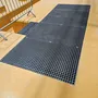 Dodatkowo zastosowano regulowane wsporniki podłogowe, które umożliwiają stabilne posadowienie krat oraz niwelację ewentualnych nierówności podłoża.